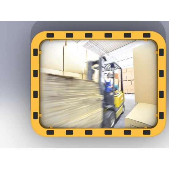 Lustro przemysłowe EUVEX 40 x 60 cm, akrylowe, z żółto-czarną ramą, w zestawie uchwyt do mocowania na słupku 50-85 mm, do użytku wewnątrz i na zewnątrz pomieszczeń, 2 lata gwarancji.